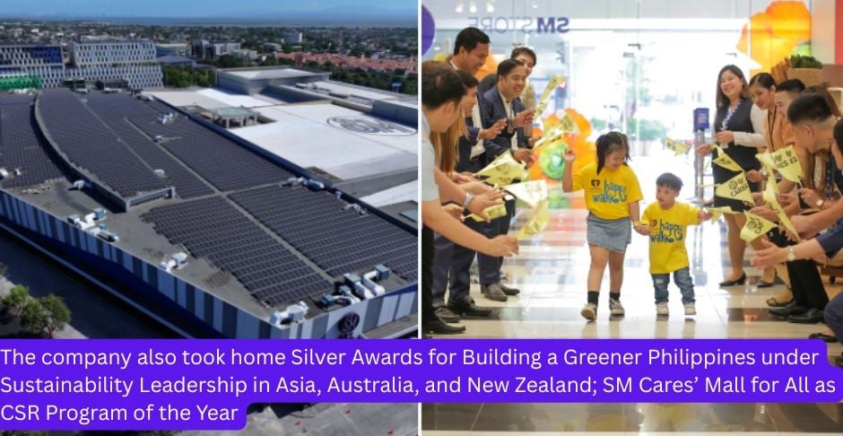 • The company also took home Silver Awards for Building a Greener Philippines under Sustainability Leadership in Asia, Australia, and New Zealand; SM Cares’ Mall for All as CSR Program of the Year; SM Cares’ Coastal Cleanup for Sustainability Initiative of the Year in Asia, Australia, and New Zealand; and Tribe Marketing Revolution and Its New Era of Consumer Connection for Best Use of Data to Drive Brand Strategy.