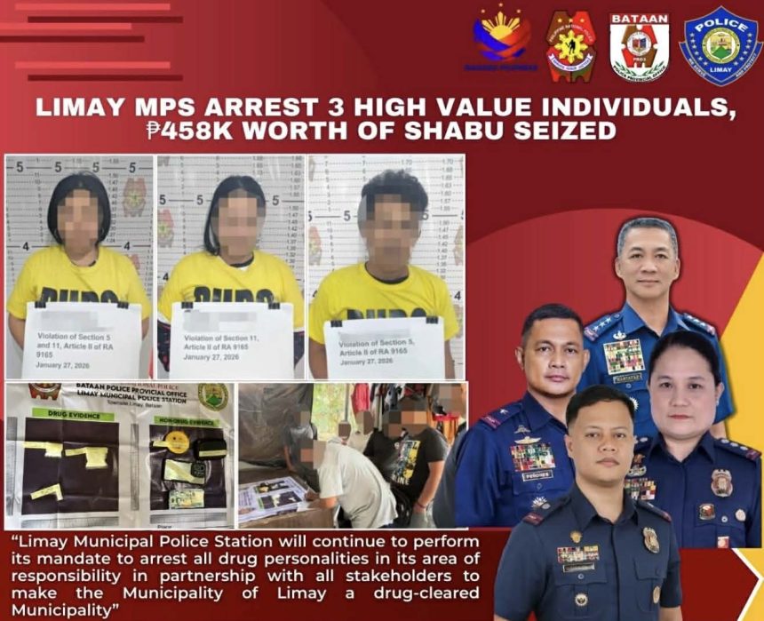 BATAAN – Matagumpay na isinagawa ng Limay Municipal Police Station ang isang buy-bust operation na nagresulta sa pagkahuli ng tatlong (3) mataas na halagang indibidwal dahil sa paglabag sa Republic Act No. 9165.
