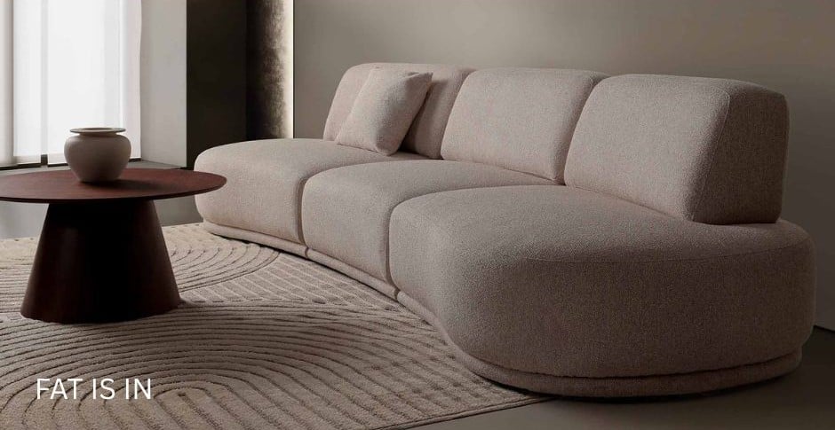 Furniture proportions are going to be excessive, overstuffed and oversized. This is to emphasize comfort above all that is aligned with providing atmospheres that eliminate stress and chaos. It gives the feeling of being cuddled, being hugged and just falling carelessly in the arms of an ultra-comfortable sofa or bed. Accentuating the need for rest, these fat pieces of furniture become a sanctuary for the body and a stimulus for the senses – tactile, textured and luxurious.